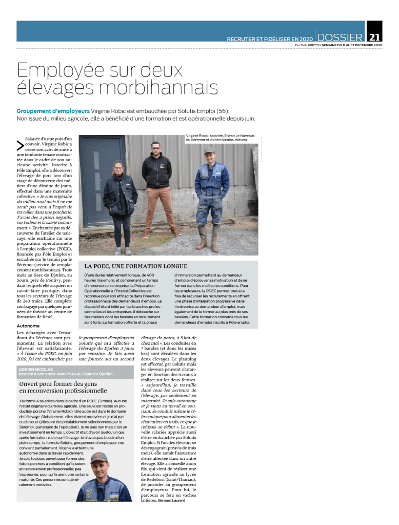 Emploi, groupement d'employeurs, morbihan, Salariés, Seremor, Service de remplacement, solutis emploi Employée sur deux élevages morbihannais Publié par communicationseremor le 23 décembre 202024 décembre 2020 « Virginie Robic est salariée Solutis Emploi. Non issue du milieu agricole elle a bénéficié d’une formation et est opérationnelle depuis juin. » Découvrez son témoignage ! Partager : Share on LinkedIn(ouvre dans une nouvelle fenêtre) LinkedIn Partager sur X(ouvre dans une nouvelle fenêtre) X Partager sur Facebook(ouvre dans une nouvelle fenêtre) Facebook Email a link to a friend(ouvre dans une nouvelle fenêtre) E-mail Plus Share on Pinterest(ouvre dans une nouvelle fenêtre) Pinterest Partager sur Tumblr(ouvre dans une nouvelle fenêtre) Tumblr Imprimer(ouvre dans une nouvelle fenêtre) Imprimer J’aime chargement… Similaire